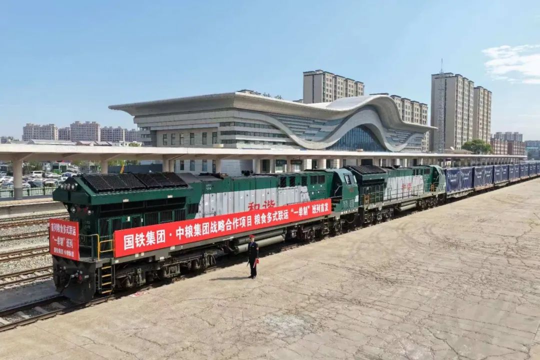 中粮集团与中国国家铁路集团战略合作项目——全国首列粮食多式联运“一单制”班列正式发车。